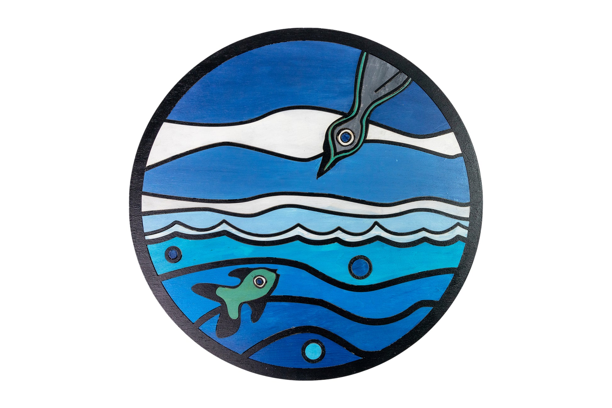 Limited Edition Wood Illustrative Painting: "An Azure Pursuit." This captivating piece captures a timeless moment of nature's drama, bringing the dynamic encounter between avian grace and aquatic intrigue to life.