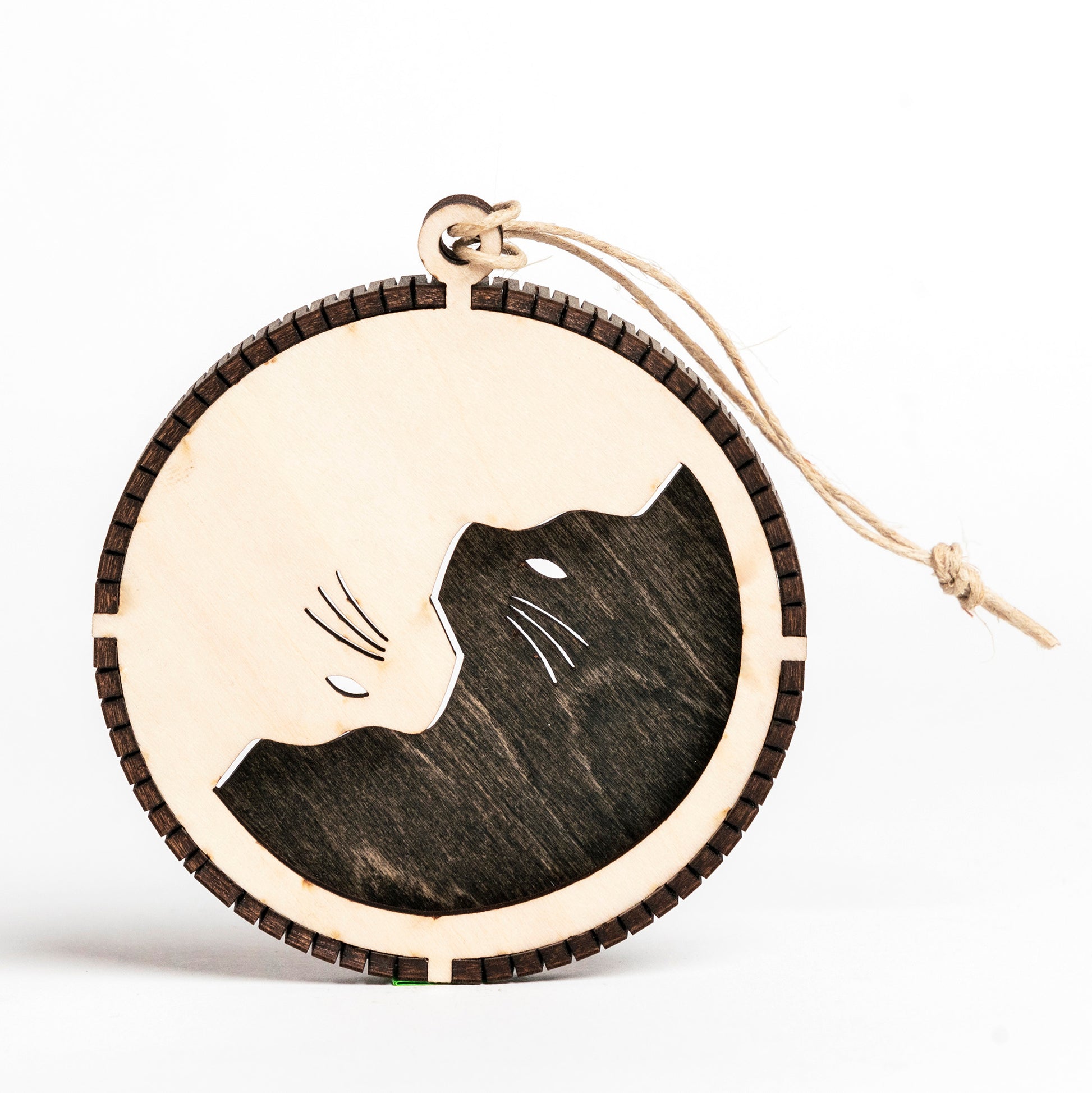 Ah, the cat. Nature's little asshole. To ensure proper balance, you need a Cat Yin Yang ornament - which is exactly as the name suggests... This two layer wood ornament is hand crafted from laser cut wood, featuring a living hinge wood band, securing the parts together.