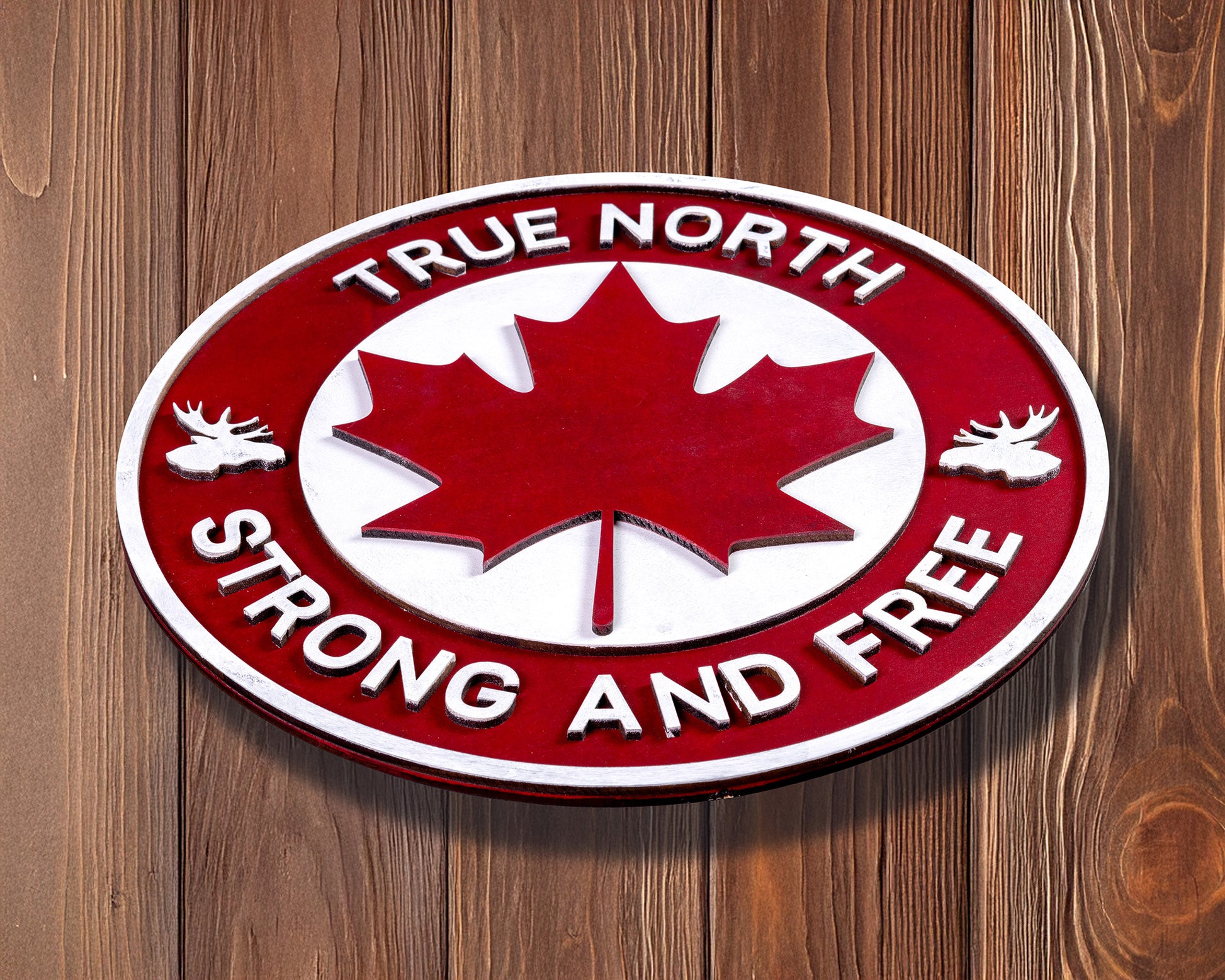 Each medallion is made from 100% Canadian maple plywood, laser-cut and hand-assembled in Prince Edward Island. With three bold phrases to choose from—“Elbows Up, Canada,” “True North Strong and Free,” and “Canada – North, Strong, Free”—these pieces reflect the values, humour, and strength that define who we are as Canadians.