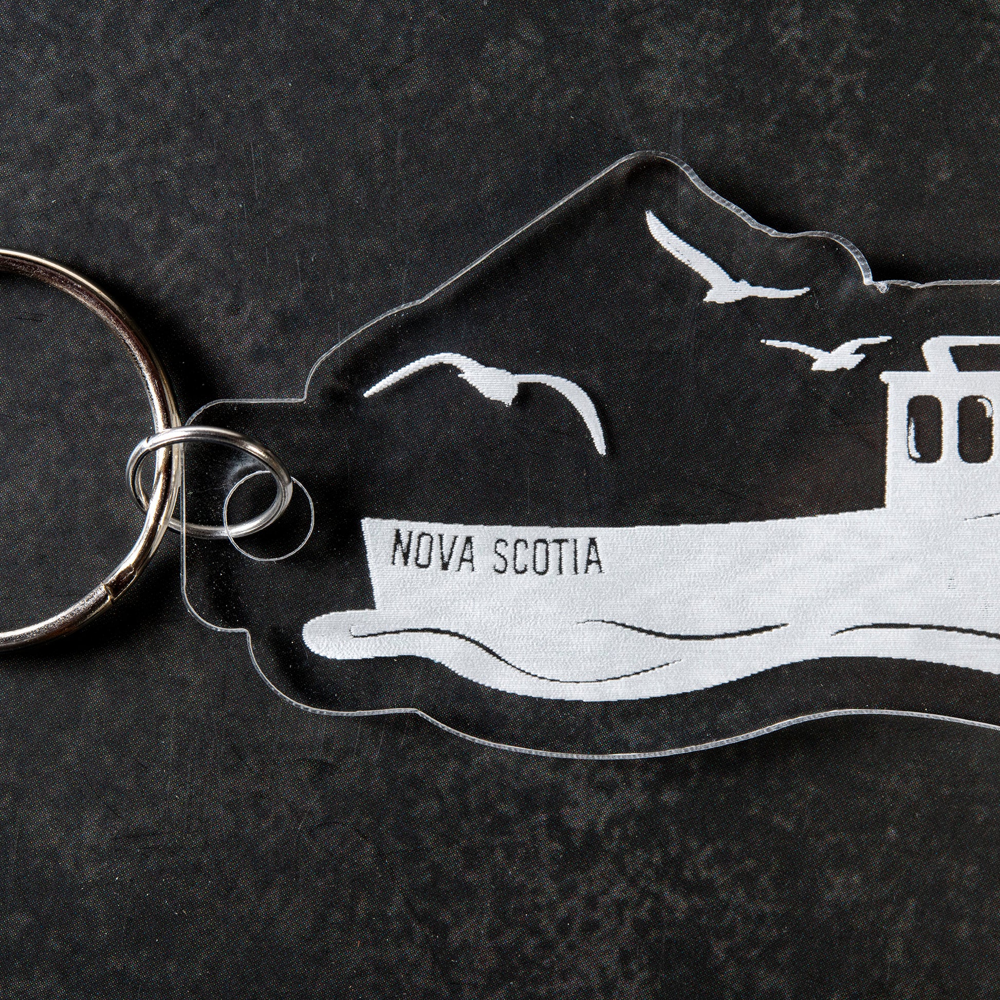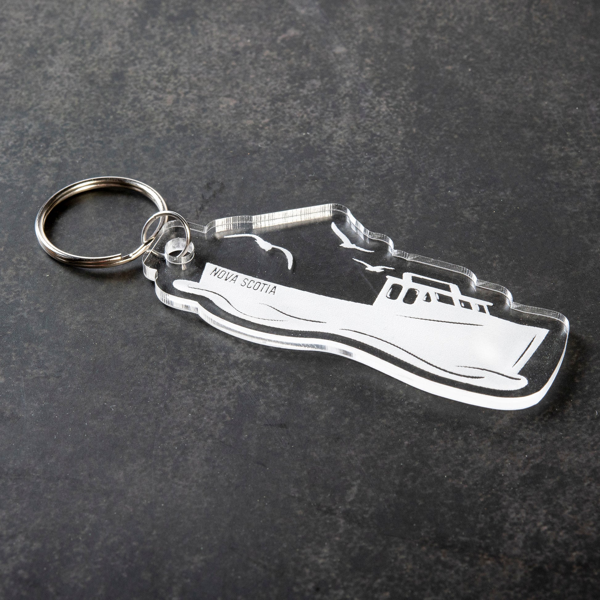 Whether you're a seasoned fisherman or simply drawn to the sea's allure, this keychain serves as a cherished memento. Its robust design ensures durability, preserving the clarity of the detailed boat and text. Attach it to your keys or bag and carry a piece of Nova Scotia's fishing tradition wherever you roam.