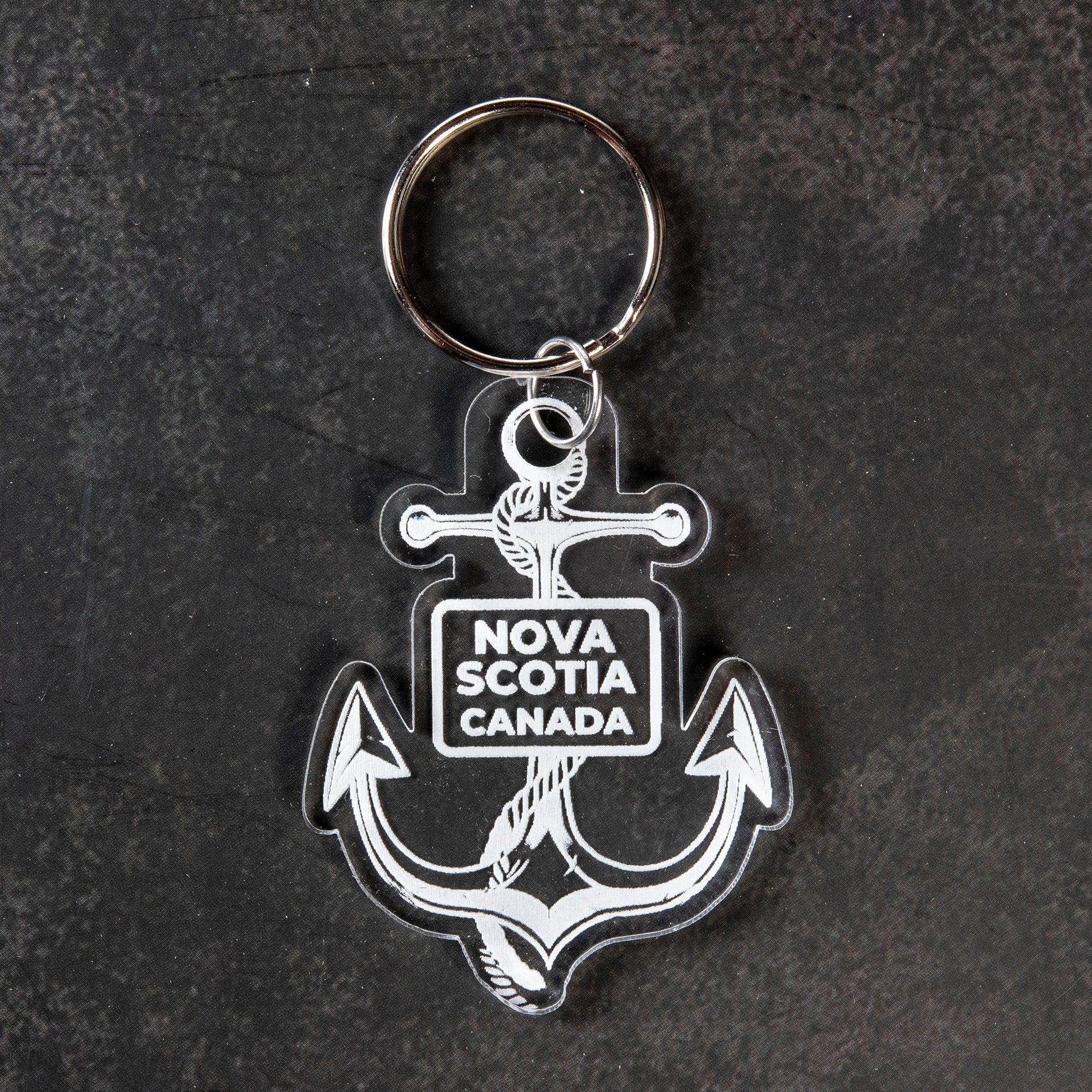 Whether you're a seasoned sailor or a landlubber enchanted by our coastal allure, this keychain is an essential keepsake. Its sturdy construction ensures longevity, while the clear acrylic preserves the intricate anchor motif and distinctive text. Attach it to your keys, bag, or backpack to carry a piece of Nova Scotia wherever your adventures take you.