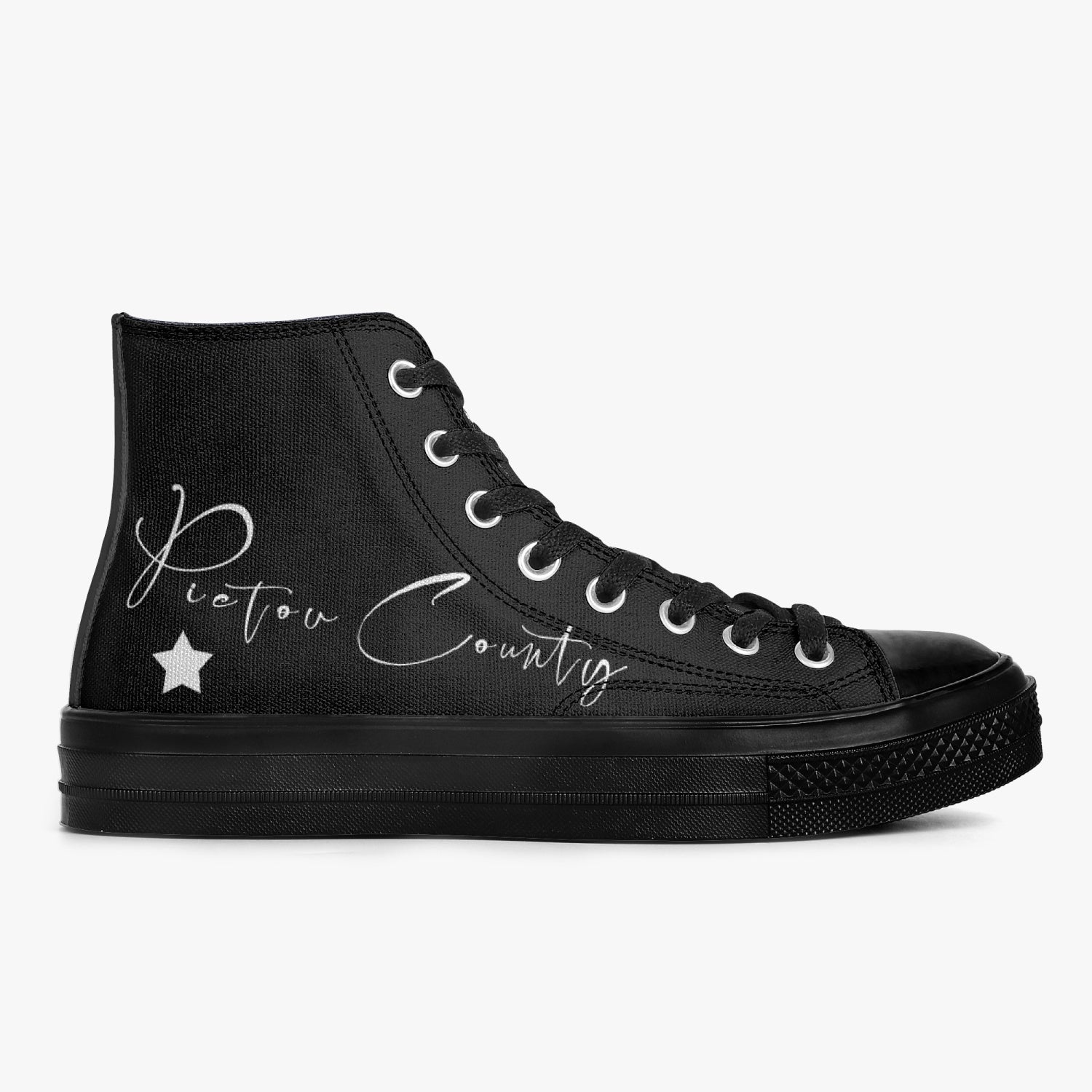 Introducing Pictou County Dress Shoes, a sleek and stylish addition to your shoe collection. These all-black canvas high-top shoes are perfect for those who want to make a fashion statement while staying comfortable. The durable canvas material ensures long-lasting wear, while the high-top design adds a touch of edge to any outfit. These shoes are not your traditional dress shoes, but they will elevate your casual look. Perfect for everyday wear or a night out on the town. Get your pair today and step up your shoe game.