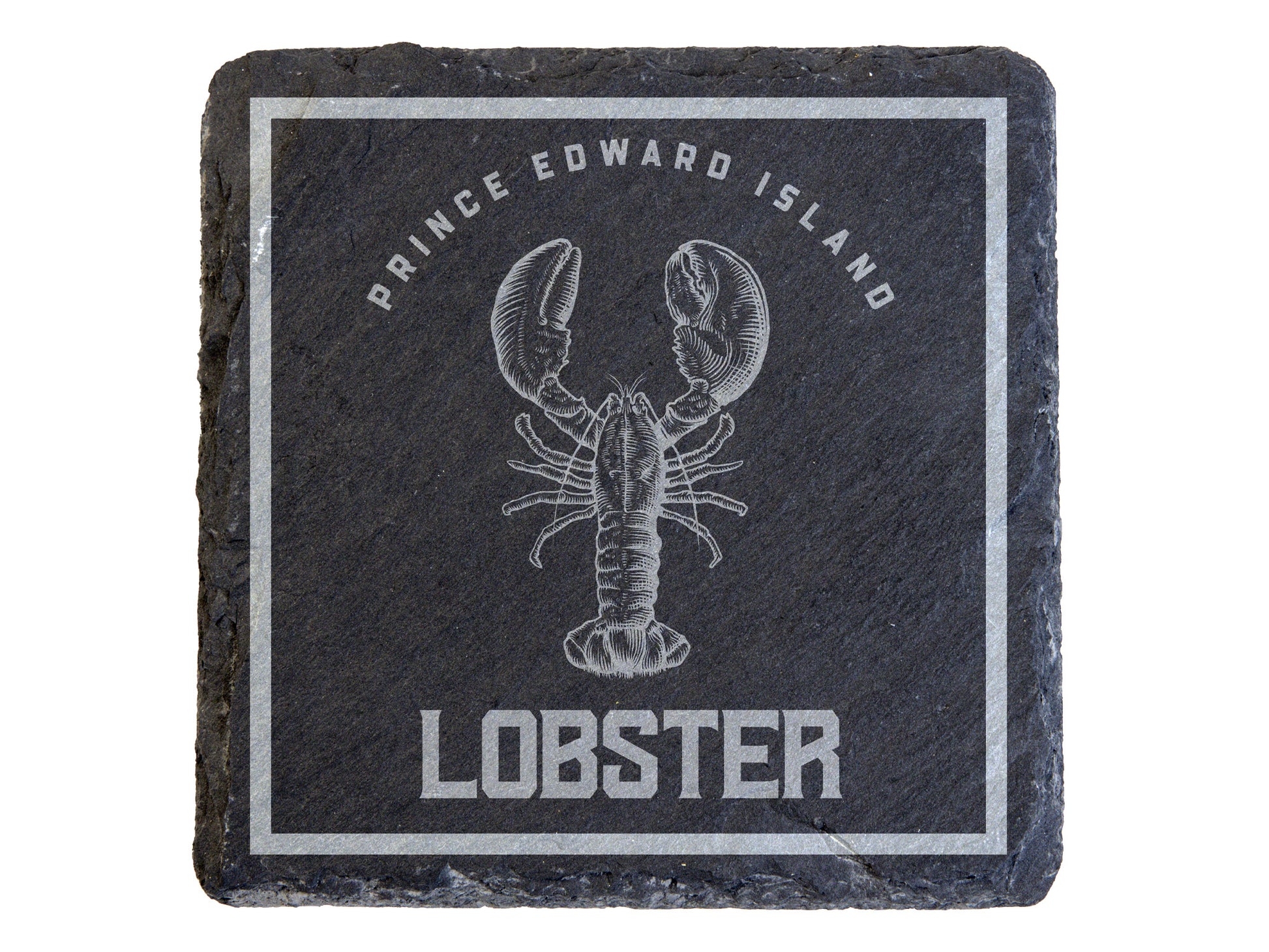 The Prince Edward Island Lobster slate coaster - the perfect addition to any seafood lover's home! This coaster features a stunning image of a lobster, laser etched onto high-quality slate for a durable and stylish finish.