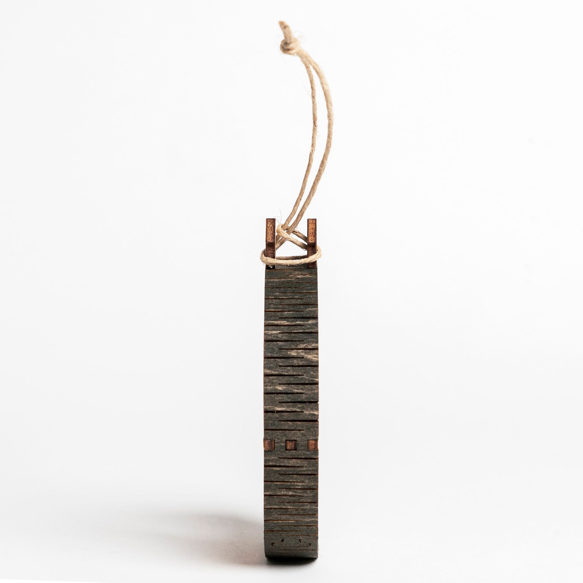 Each ornament is handcrafted with meticulous attention to detail, showcasing a flexible living hinge wood band that is intricately cut for a beautiful natural curve. This innovative design requires no glue or bonding materials, emphasizing the exceptional craftsmanship involved.