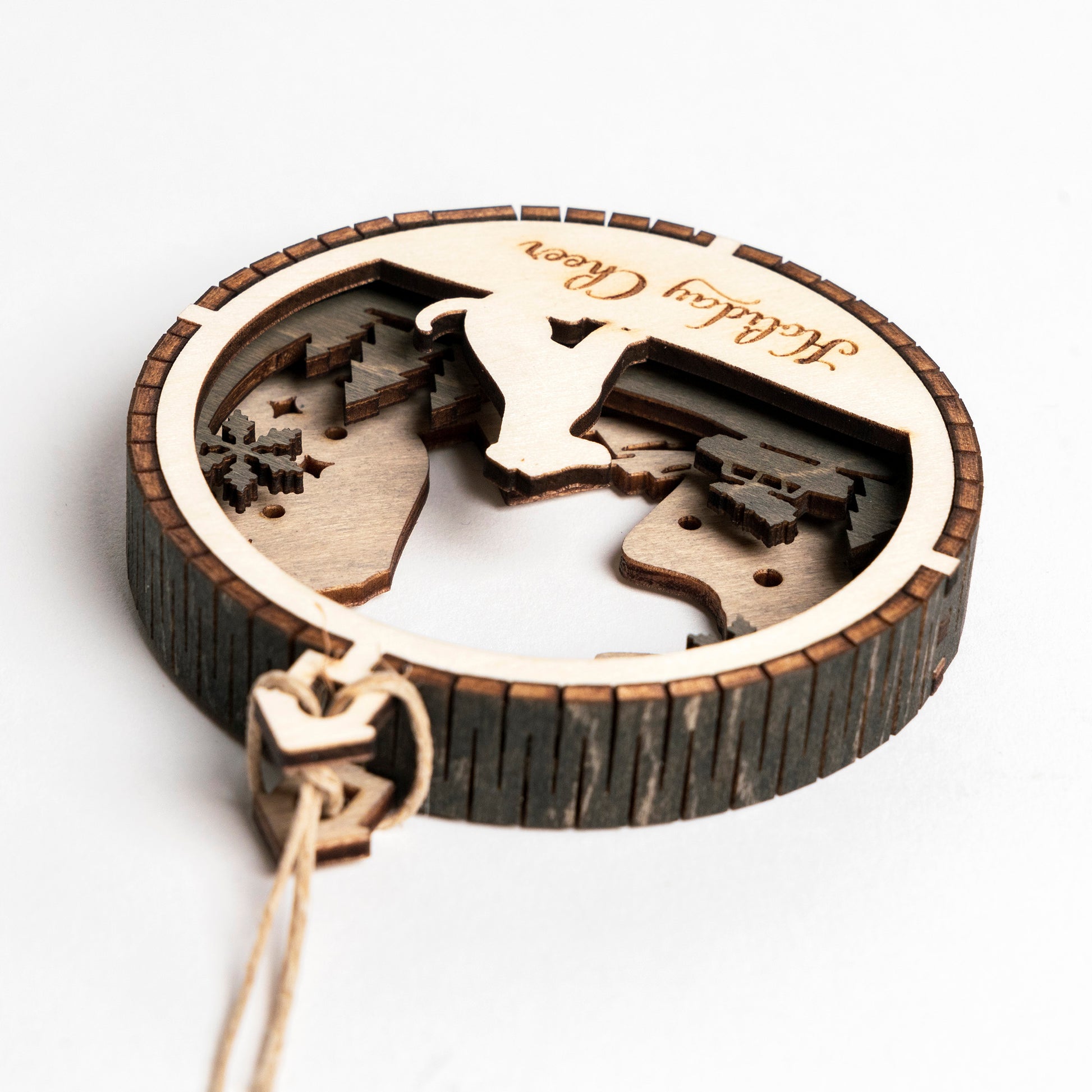 Constructed from high-quality, laser-cut stained wood, the rich hues of each layer add depth and beauty, making these ornaments not just decorations but treasured pieces of art.